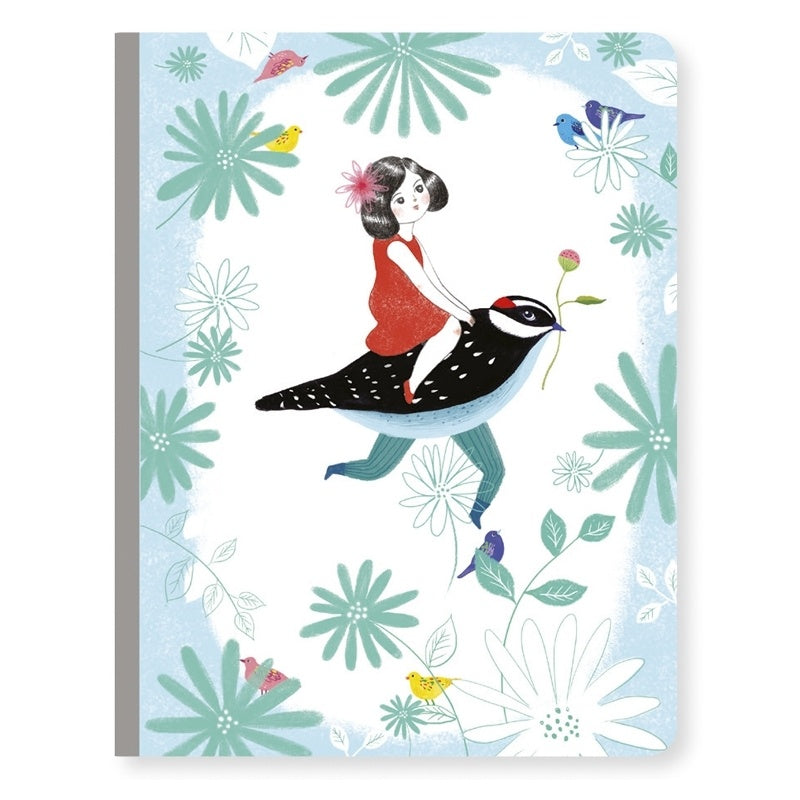 Dos du bloc-notes avec effet métallisé. Le cahier comporte 48 feuilles lignées avec un petit dessin sur chacune.