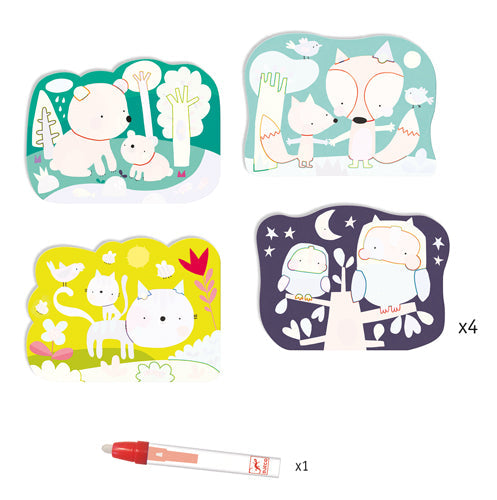 Remplissez le feutre avec de l'eau et coloriez l'image - une image lumineuse apparaîtra. Et lorsque l’eau sèche, les couleurs s’estompent – vous pouvez à nouveau peindre ! L'ensemble comprend 4 tableaux et un feutre spécial.