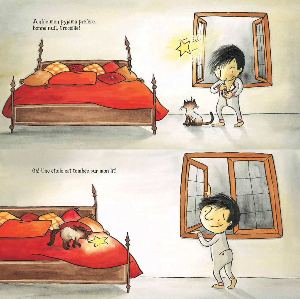 Dans ce charmant conte pour l’heure du dodo, notre petit chevalier préféré troque son armure contre son pyjama pour aller dormir. Mais au moment où il s’apprête à se coucher, une étoile tombée du ciel atterrit dans son lit! Le petit chevalier pourra-t-il trouver sommeil?