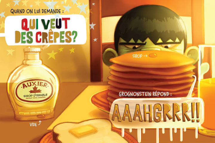 À première vue, on pourrait croire que c'est un garçon ordinaire mais lorsqu'il fait trop froid à l'Halloween ou qu'il fait trop chaud pour des sucettes glacées, Grognonstein se manifeste et se met à grogner : AAAHGRRR! Ce n'est que lorsqu'il rencontre un autre spécimen de son espèce qu'il se met à rire, pour un instant, car méfiez-vous, Grognonstein tend à réapparaître assez rapidement...