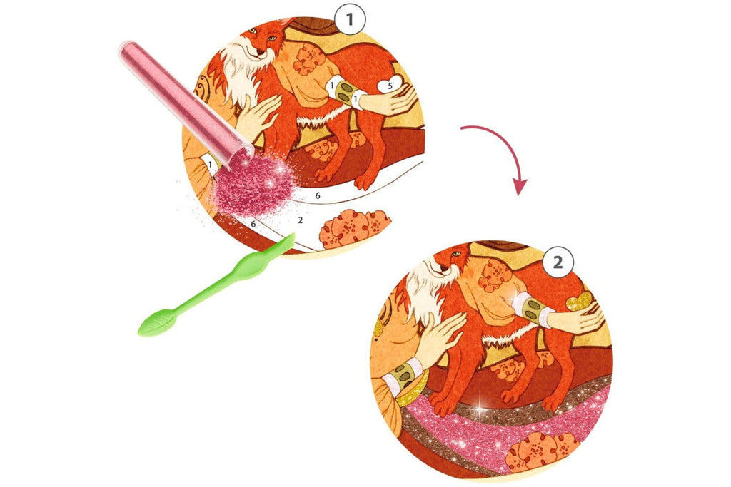 L'ensemble contient : 4 bases (20x20 cm), des paillettes en 6 couleurs, une pile, des instructions de couleur étape par étape.