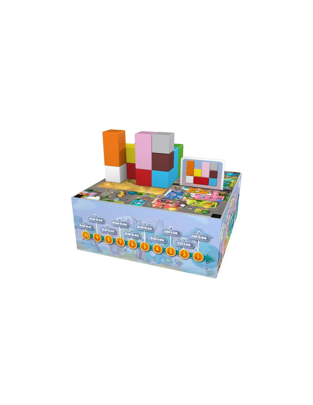 « Jouer à l'envers » développe parfaitement les capacités de communication et de coordination entre eux. Améliorez votre pensée spatiale et perfectionnez votre motricité fine. Des jeux incroyablement amusants et rapides en temps réel vous procureront des émotions indescriptibles. Et le plus important ! Pour ceux qui préfèrent les modes coopératifs aux modes compétitifs, il y aura aussi de quoi faire. Une option chic pour deux joueurs est également proposée. Au début de la partie, chaque joueur reçoit un gros jeton de sa couleur et des petits jetons correspondant aux couleurs de tous les adversaires. Placez les jetons de vos adversaires face cachée et mélangez-les. Sélectionnez le niveau de difficulté du jeu et prenez les pièces en bois appropriées pour la construction. Pendant le jeu, une minuterie sur votre smartphone vous sera utile. À son tour, le joueur actif retourne l'un des petits jetons face visible et détermine qui devient son partenaire pour le tour. Assis l'un en face de l'autre, les joueurs reçoivent une carte de tâche recto verso, démarrent le chronomètre et la construction commence !
