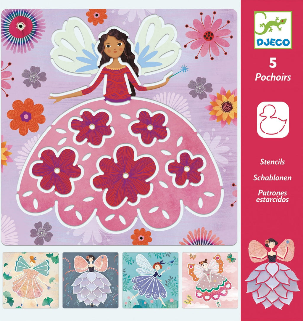 L'ensemble comprend 5 pochoirs 20x20 cm