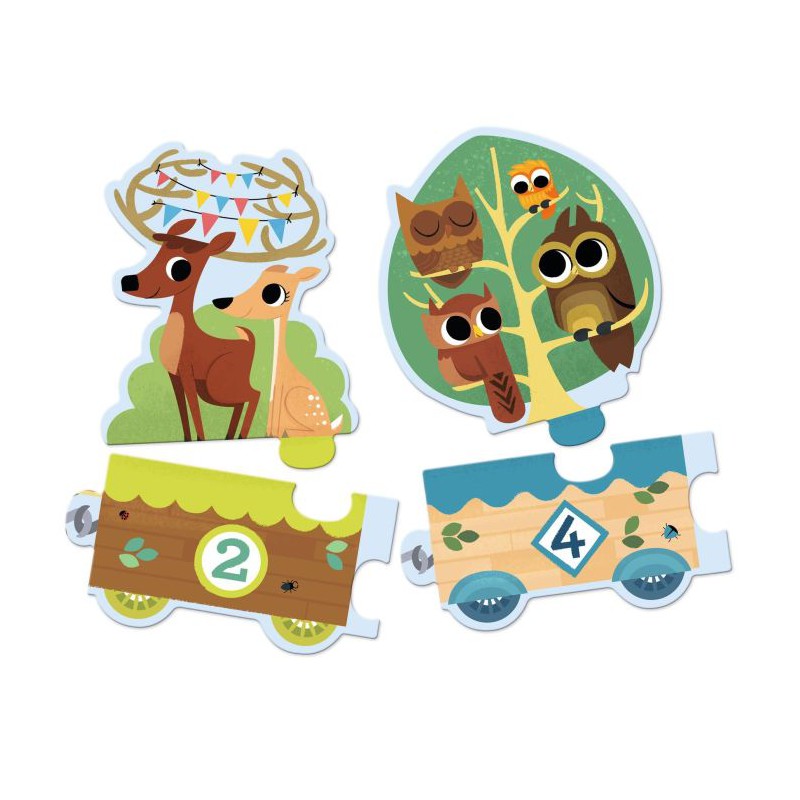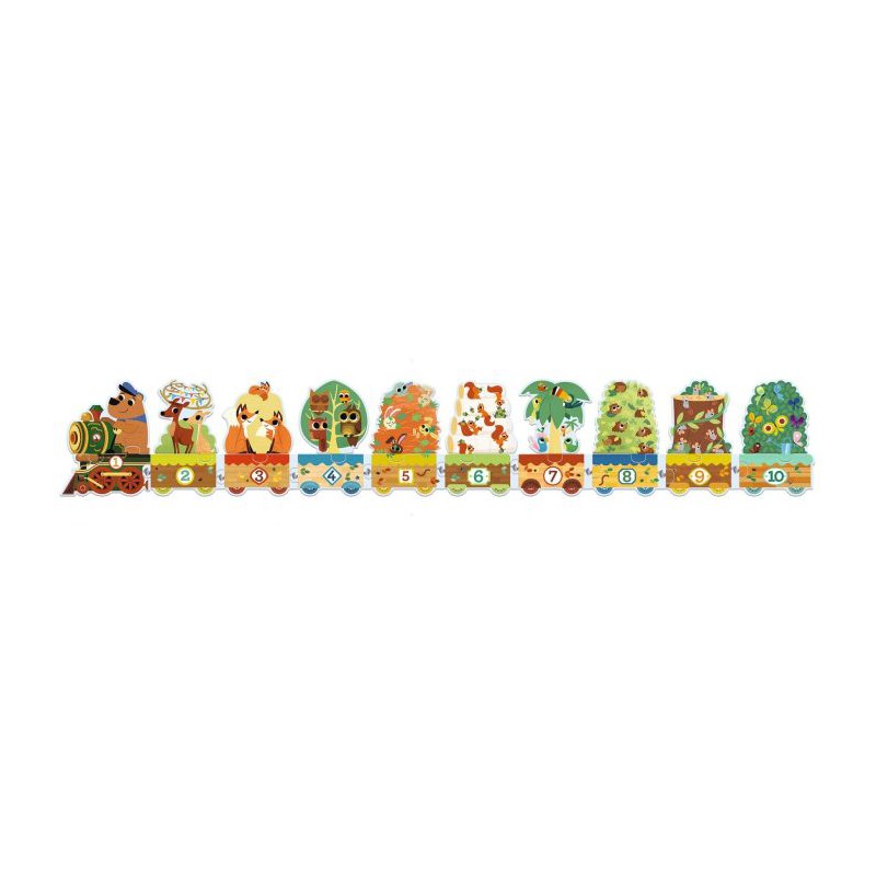 Pour construire un long train, vous devez disposer les wagons dans le bon ordre. Chaque pièce porte un numéro écrit dessus. La longueur du puzzle assemblé est de 1,20 m
